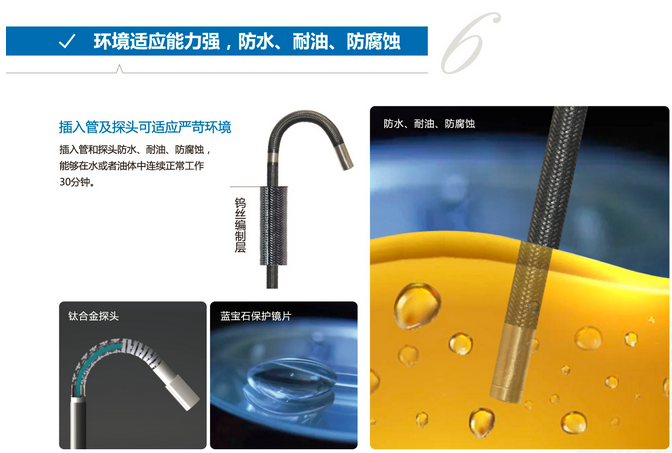 插入管探頭防水、耐油、防腐蝕,能夠在水或者油中連續正常工作30分鐘。